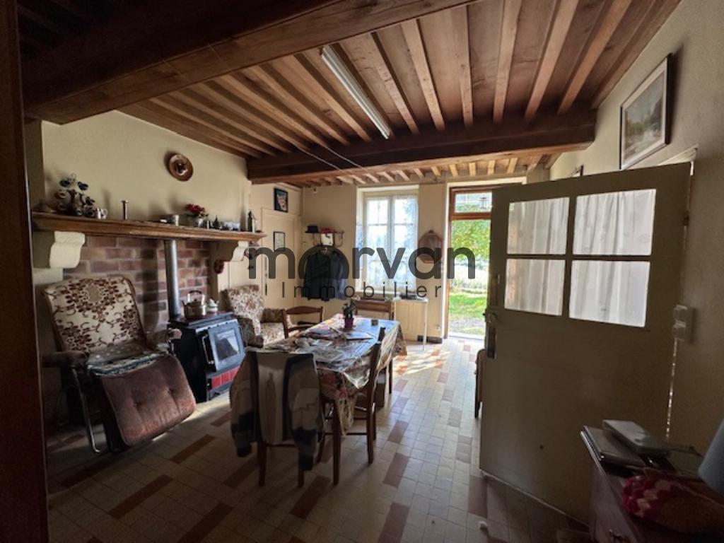 " Maginifique propriété morvandelle comprenant une habitation de 104m2, beau salon avec cheminée(carreaux rouges, poutres), cuisine avec sortie sur l'arrière et le terrain (cuisinière à bois et four à pain), salle à manger avec cheminée équipée d'un poêle) chambre en rdc, salle d'eau avec WC, à l'étage deux chambres parquetées.