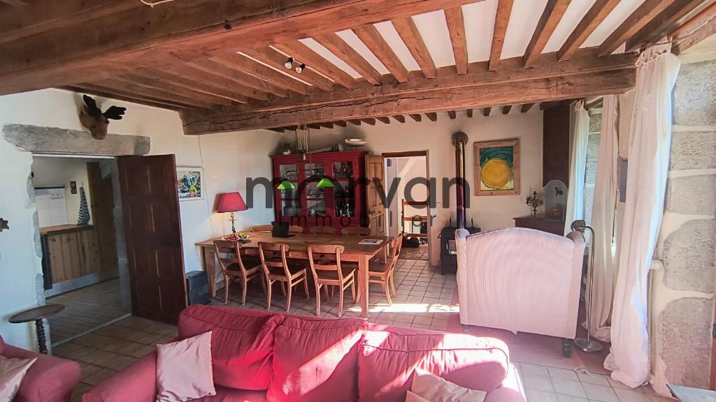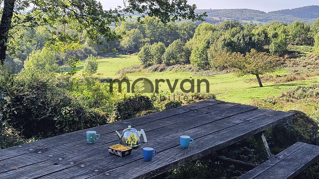 La maison est alimentée en eau par une source. Chauffage éléctrique et poêle à bois. Fosse septique à remettre aux normes : prévoir un investissement d'environ 15.000 euros à parfaire ou à diminuer dans la première année suivant l'achat. Les 2.4 hectares de terrain sont en grande partie un chemin d'accès à la propriété, derrière la maison une partie boisée et un verger. Pas de prés pour amateurs des chevaux, disponible.