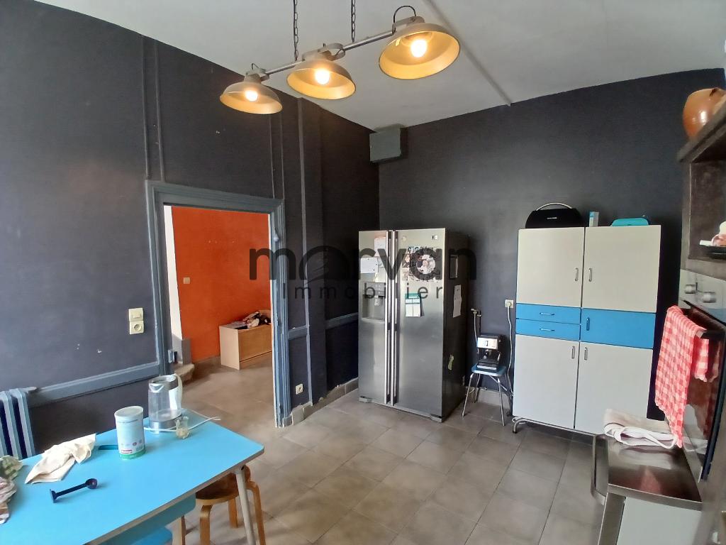 Depuis le hall d'entrée directement à gauche en entrant, bureau, cuisine avec arrière cuisine, salle d'eau avec W.C. Accès au garage avec chaufferie, CC au fioul.