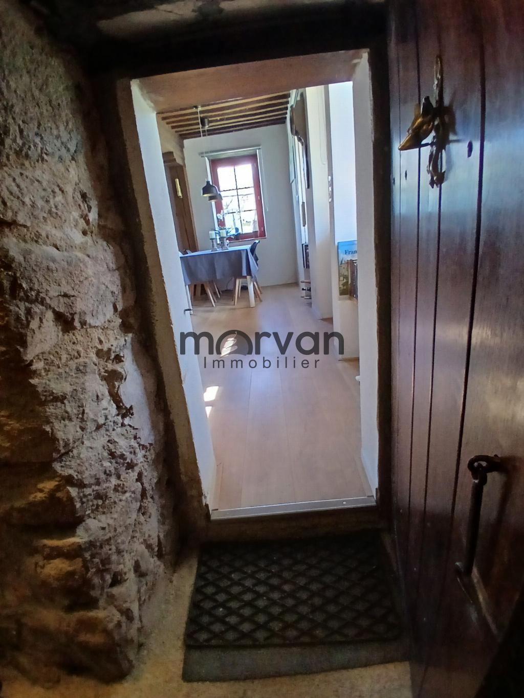La deuxième, fort potentièle pour cette maison en pierre élevée sur cave avec 4 pièces et un grenier aménageable. Première maison (blanche) entrée par le séjour de 28m2, chauffage au sol, une cheminée avec four à pain et un accès au cellier.