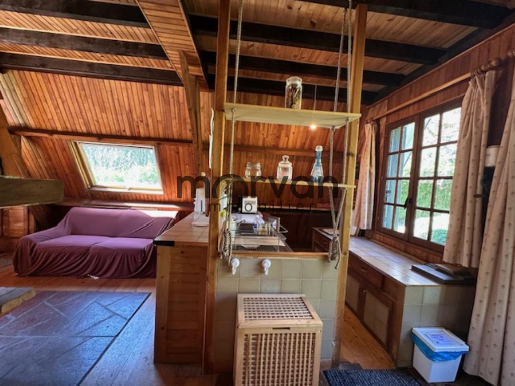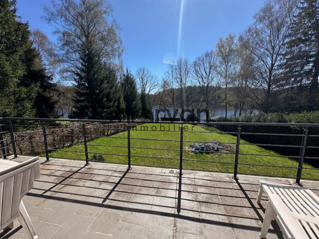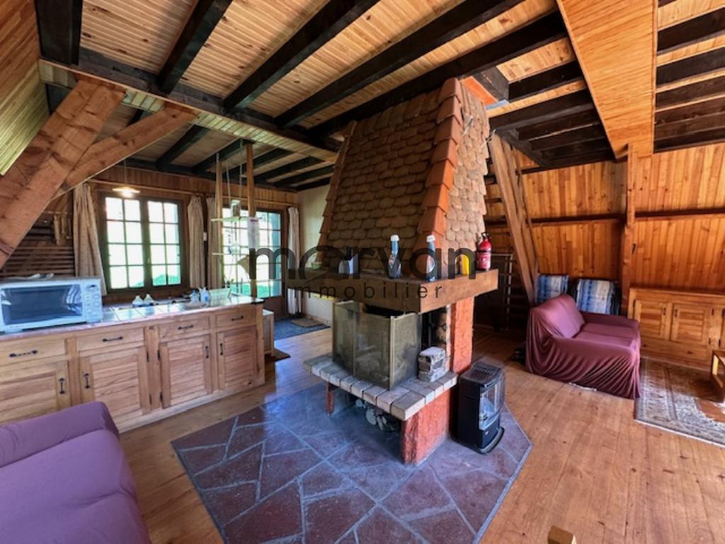 " Au bord d'un chemin néanmoins accessible en voiture mais en impasse, magnifique chalet canadien de forme delta en bordure du lac de chaumeçon comprenant en rez de jardin une belle salle de séjour avec cheminée, grandes fenêtres et portes fenêres ouvrant sur terrasse plein sud, cuisine ouverte sur le séjour. Au premier étage deux chambres dont une avec balcon. sous sol total environ 60m2 avec 2.70m de hauteur sous plafond (sous reserve de l'obtention d'un accord des services compétents) ce sous sol aménagé double la surface de la maison et se trouve en rez de jardin