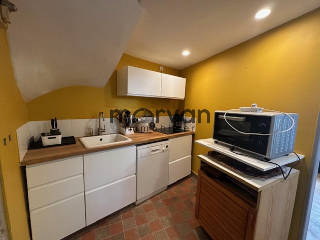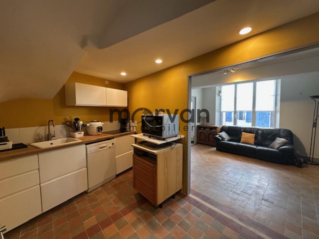 " Une maison de ville proche tous commerces comprenant au rez-de-chaussée: une entrée desservant un séjour et une cuisine ouverte, W.C.