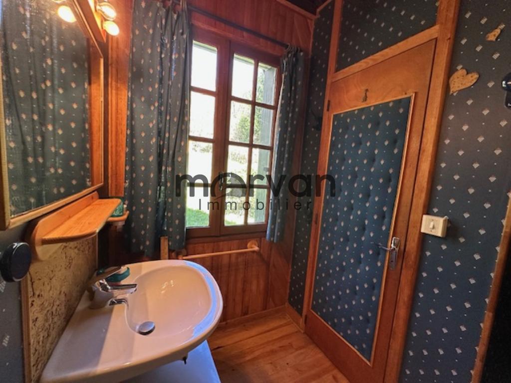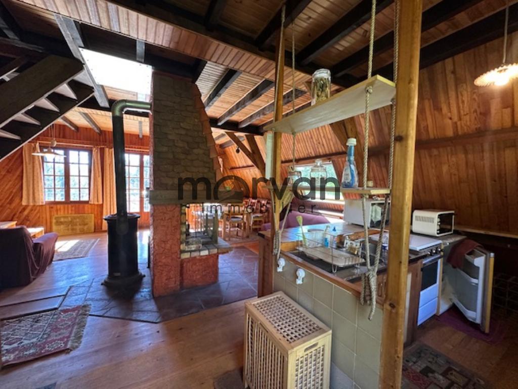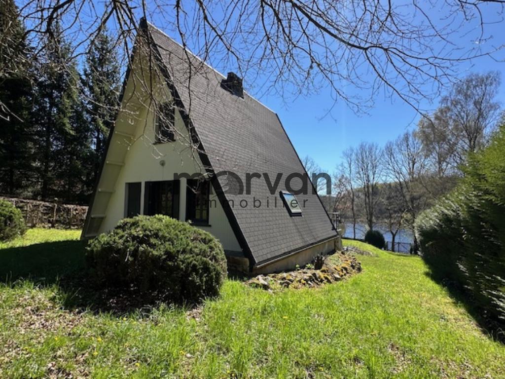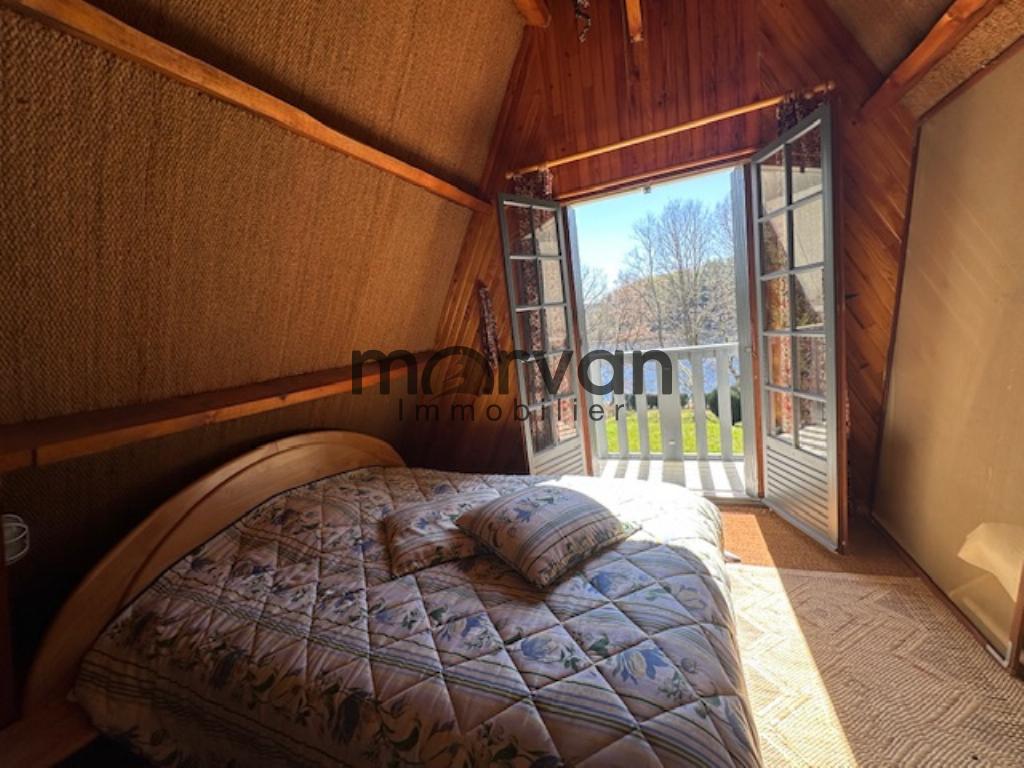 " Au bord d'un chemin néanmoins accessible en voiture mais en impasse, magnifique chalet canadien de forme delta en bordure du lac de chaumeçon comprenant en rez de jardin une belle salle de séjour avec cheminée, grandes fenêtres et portes fenêtres ouvrant sur terrasse plein sud, cuisine ouverte sur le séjour. Au premier étage deux chambres dont une avec balcon. sous sol total environ 60m2 avec 2.70m de hauteur sous plafond (sous reserve de l'obtention d'un accord des services compétents) ce sous sol aménagé double la surface de la maison et se trouve en rez de jardin